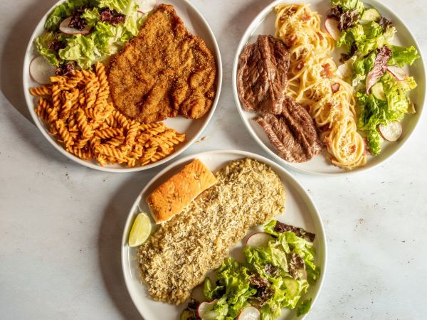 Elige el Tipo de Pasta a Tu Gusto, Adiciona la Salsa Que Desees Para la Pasta con Parmesano y la Proteina con la Que Quieres Completar el Plato, Acompañado de Ensalada con Vinagreta Verde.
