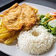 130 g De milanesa de cerdo, arroz blanco, ensalada, papa francesa, salsa de la casa y gaseosa 250 ml (manzana, Colombiana, Pepsi).
