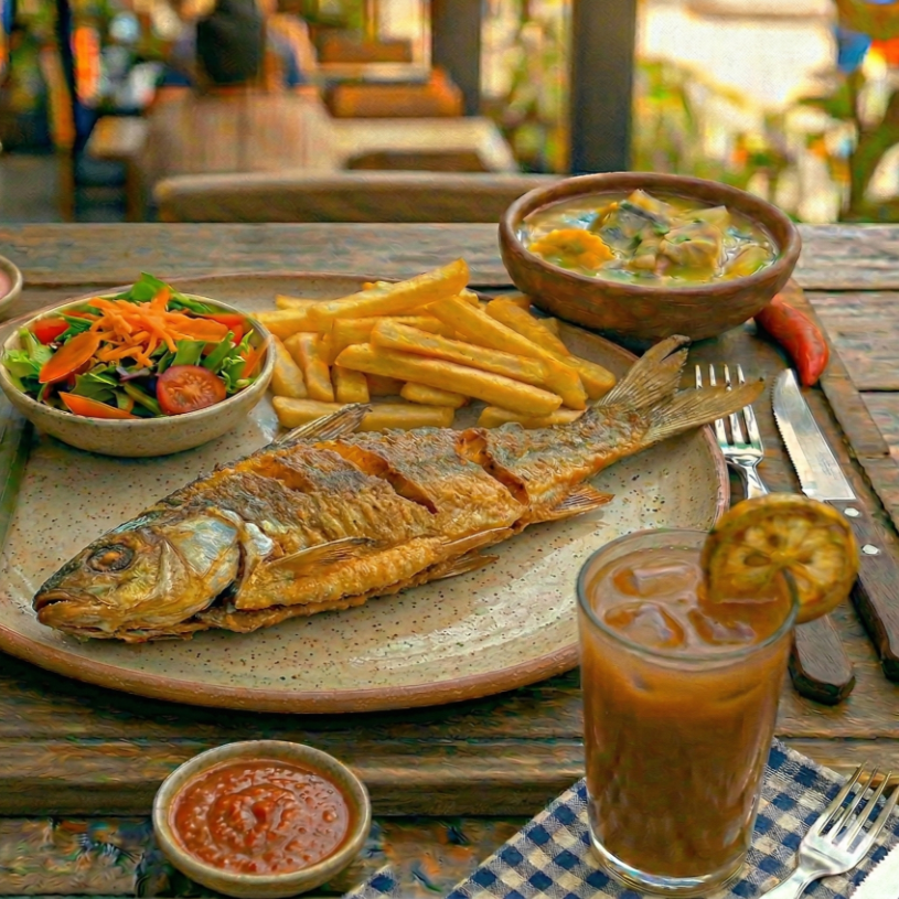 Picuda Frita de 250 g, Francesa, Sopa y Bebida