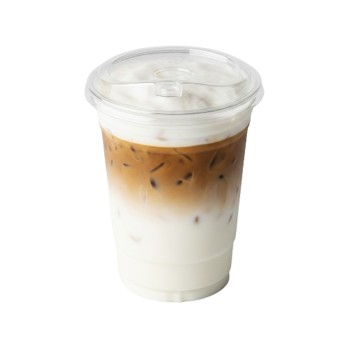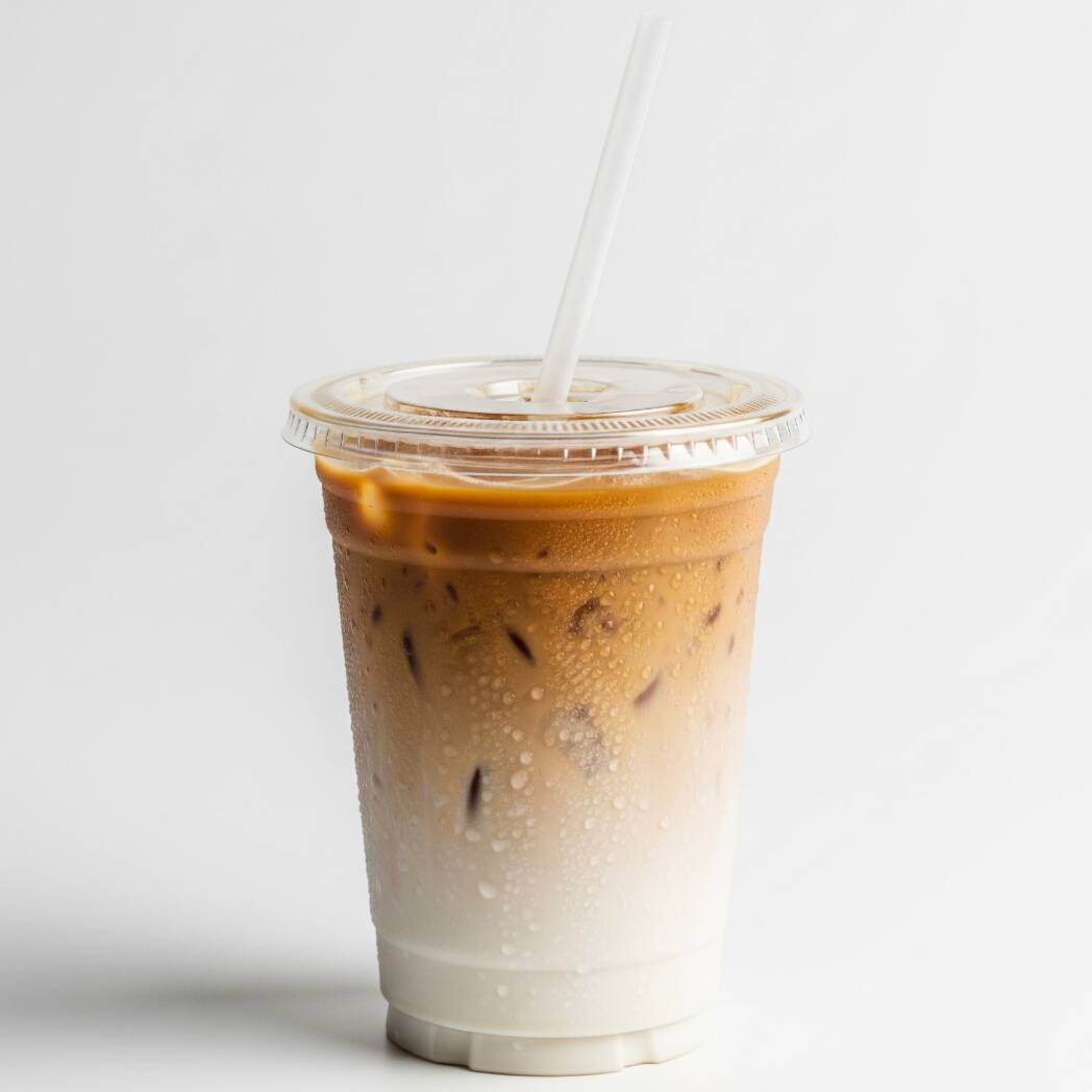 Latte helado con cantidad perfecta de hielos en el interior, leche deslactosada, café y espuma de leche