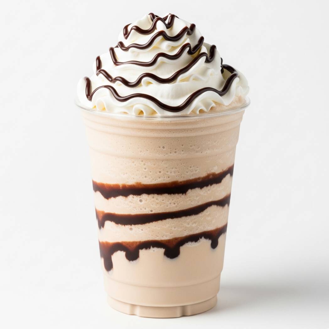 Frappe de café suave y cremoso con el toque perfecto de chocolate, decorado con crema chantilly y un baño de chocolate liquido que lo hace simplemente irresistible.