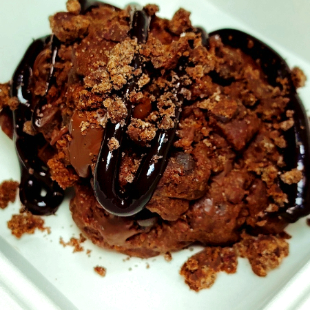 Cookies new york triple chocolate con salsa de chocolate, y trozos de brownie