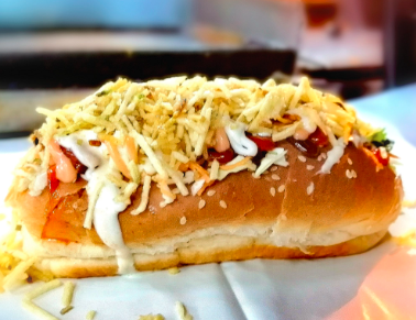 270 g De papa francesa, salchicha americana, queso doble crema y salsas.