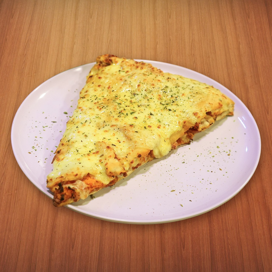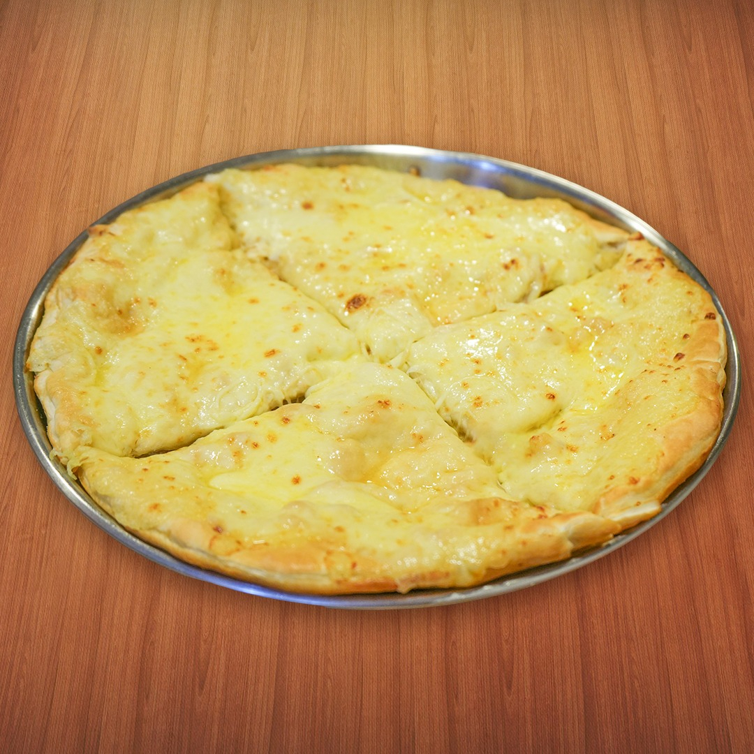 Doble porción de queso mozzarella, queso crema, pollo, champiñones, salsa napolitana y orégano.