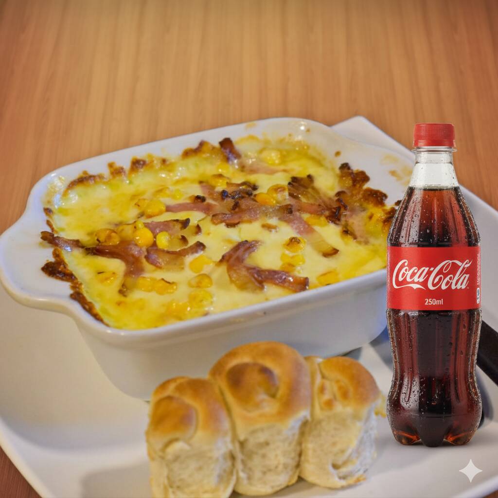 Pasta lasaña, queso mozzarella, queso crema, carne boloñesa y salsa napolitana + 1 Coca Cola 250 ml.
