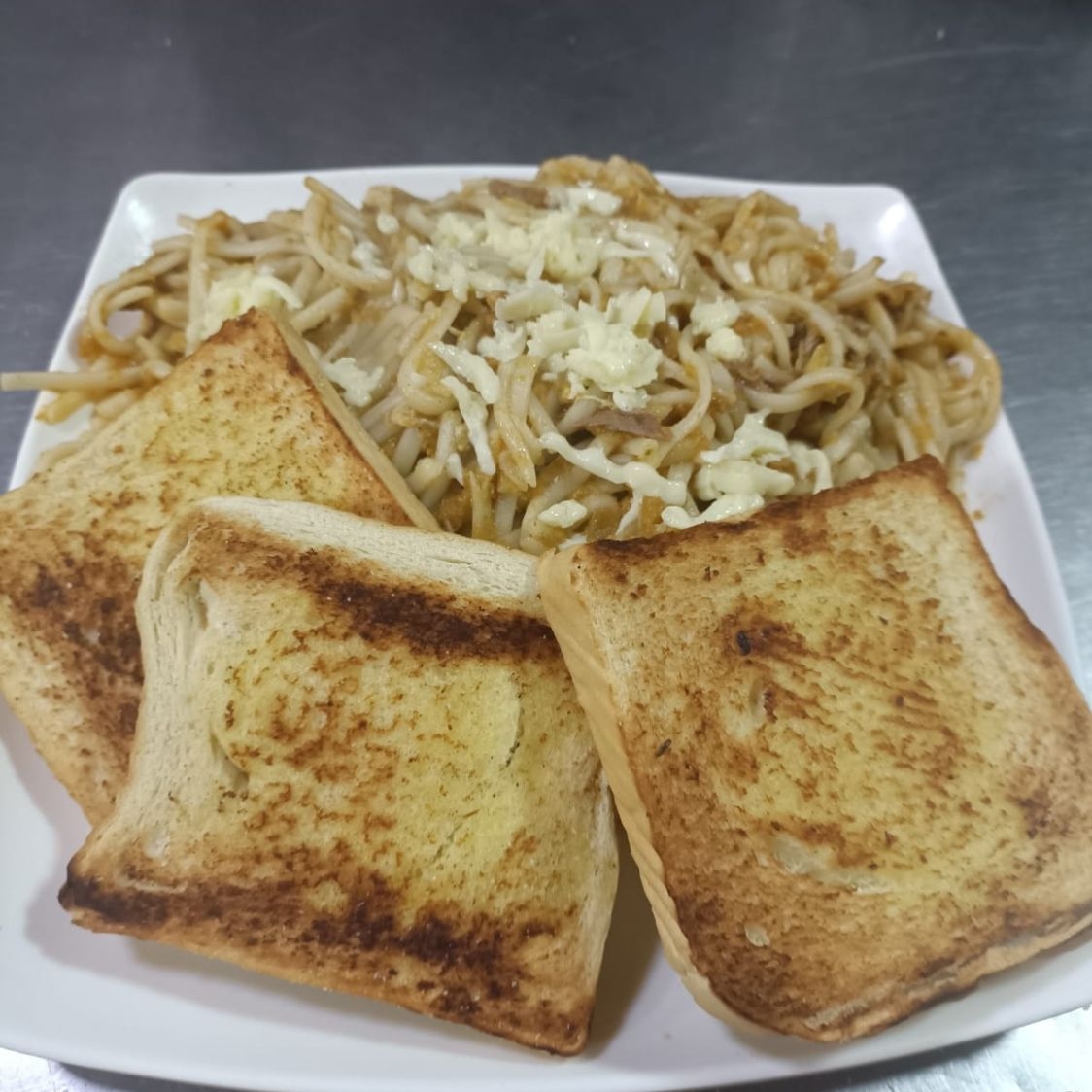 Salsa bolognesa, carne desmechada, pasta y queso.