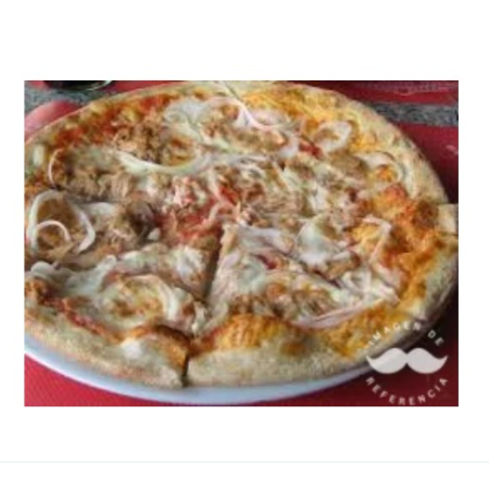 Pizza de 6 porciones. Ingredientes: 30 cm con queso mozzarella, pimentón, cebolla, champiñón, maíz, pasta de tomates