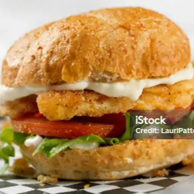 hamburguesa con pechuga de pollo jamon queso salsas lechuga tomates cebolla caramelizada porcion de papas rusticas fritas