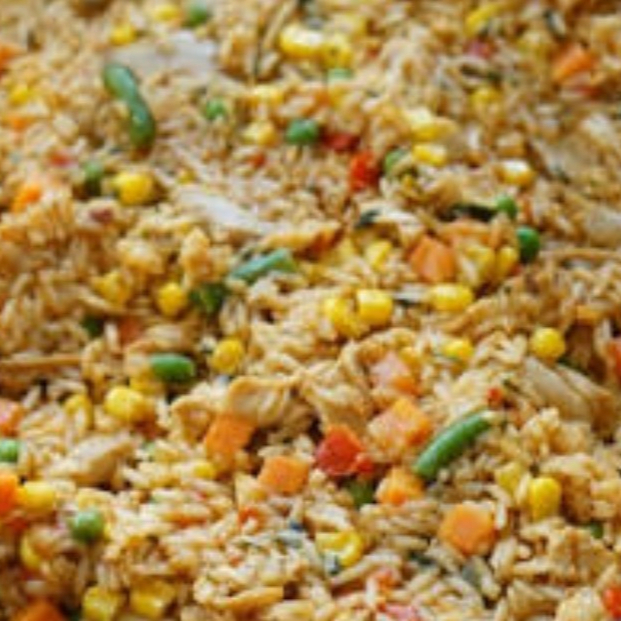 arroz fritos salteados con vegetales jamon tocineta chorizo pollos troceados salsa de soja y agridulces