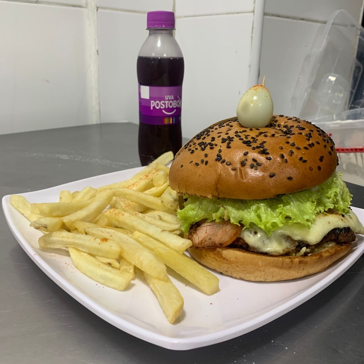 Hamburguesa especial, papa francesa y gaseosa 250 ml.