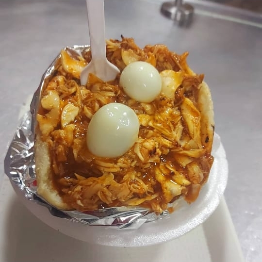 Pan, carne artesanal o pollo apanado 120 g, maíz, chorizo, tocineta, carne desmechada, cebolla, tomate, lechuga, papa miga, queso, salsas y huevos de codorniz.