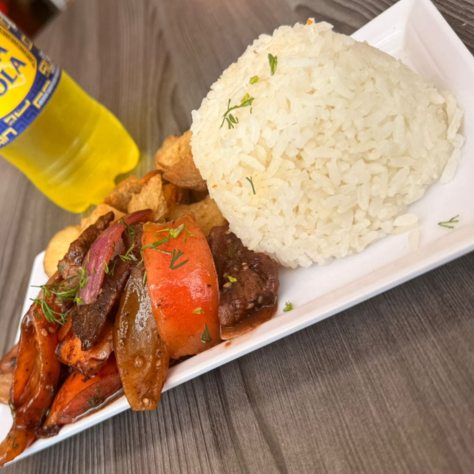 Un ícono de Perú: lomo de res jugoso, papas crocantes y arroz blanco