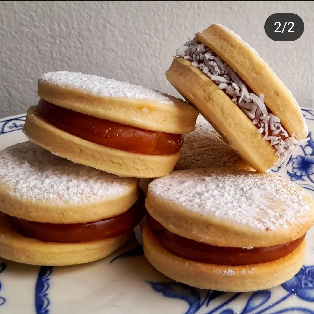 Tradicional alfajores rellenos de arequipe cubiertos de coco