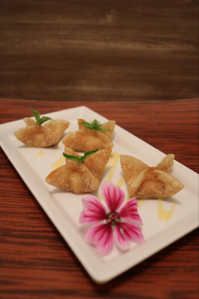 Wontons fritos, rellenos de queso, arequipe.
