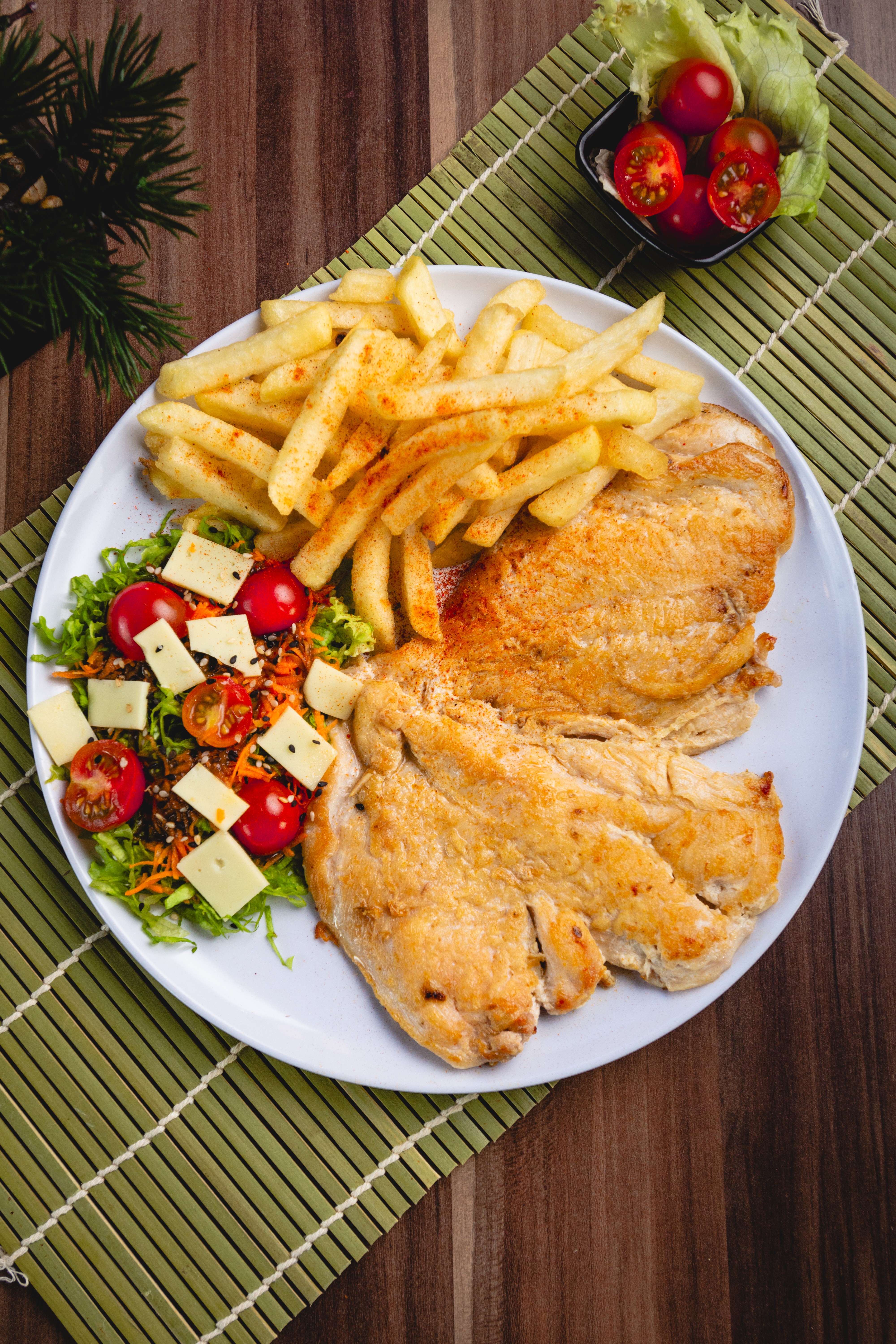 Deliciosa y natural! corte de 250 gr de pechuga a la plancha o apanada, acompañada de papas a la francesa, ensalada y jugo de la casa