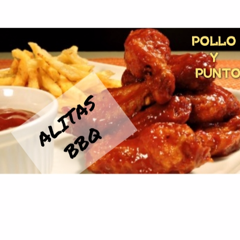 20 piezas de alas bañadas en salsa bbq artesanal acompañadas de papas a la francesa