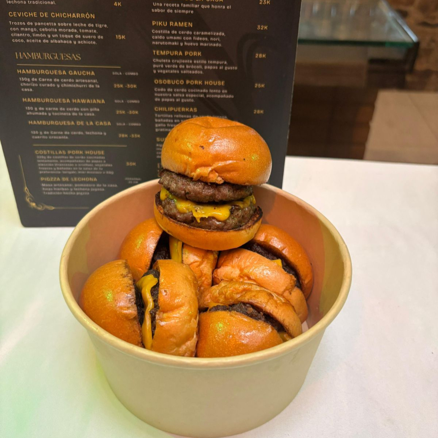 20 Mini Burguer con 60 g de carne a la parrilla, queso americano fundido y delicioso pan artesanal. ¡Perfectas para compartir!