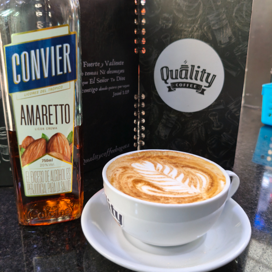 Capuchino con licor de amaretto, brandy y licor de café.
