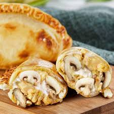 Pastel de pollo con champiñón, relleno cremoso y lleno de sabor, horneado a la perfección.