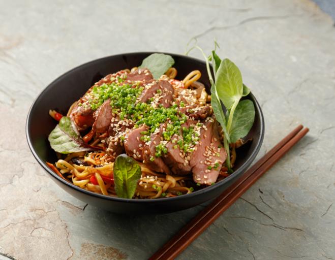 Fideos de trigo cocinados al wok, con aceite de sésamo, vegetales frescos en salsa yakitori, ajonjolí y cebollín. elige la proteína que más te guste.