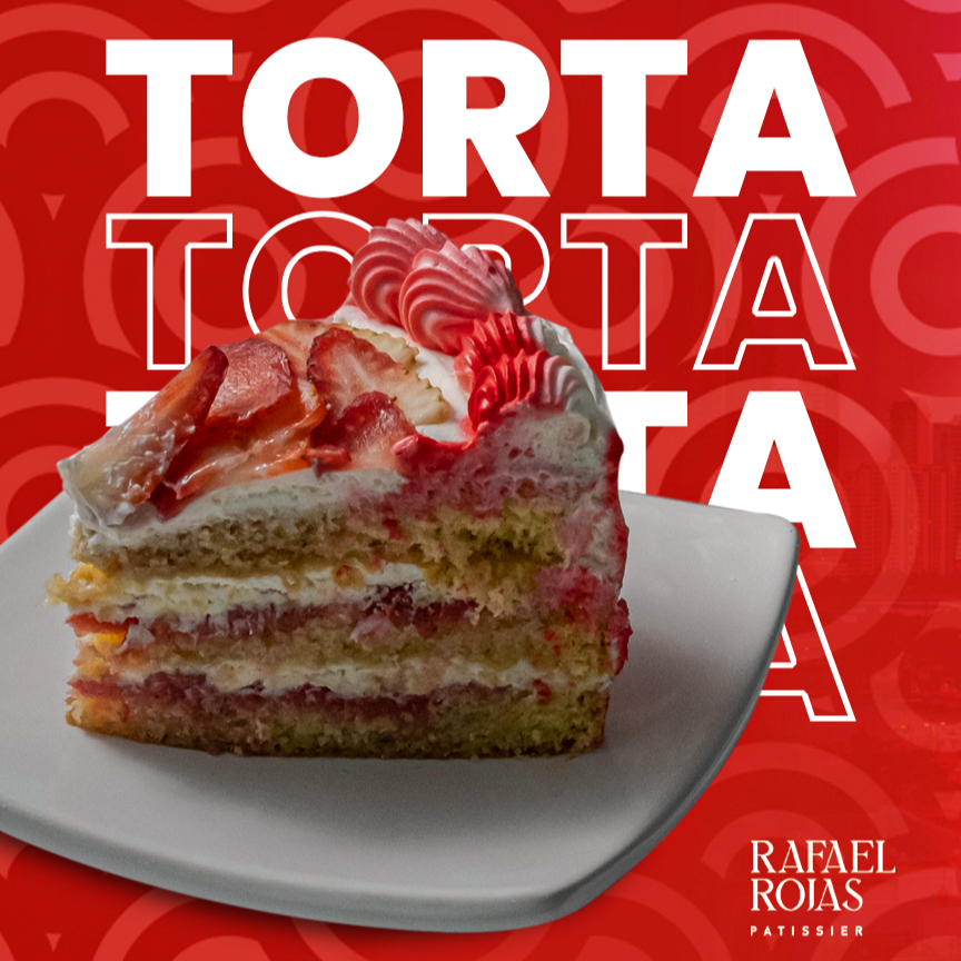 Torta semidesnuda, elaborada con un suave bizcocho de vainilla, humedecido en un almibar de fresas y especias. Sus dos rellenos vienen dispuestos en capas cubiertas con un coulis de fresa, hecho en casa 100% artesanal y una aterciopelada crema chantilly, con la que se cubre la torta. Decorada con una corona de fresas frescas que realzan su sabor y frescura.