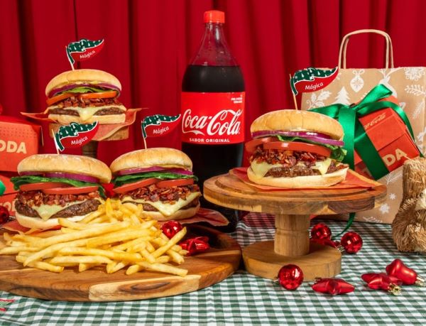 4 Hamburguesas 1/4 de Libra con Queso Fundido, Tocineta Caramelizada, Verduras, 2 Papas Grandes y 1 Coca Cola 1.5lt