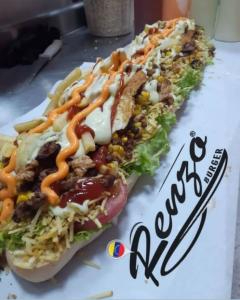 Pan de 60 cm, carne, pollo, chuleta, queso amarillo, queso, tocineta, ,maíz, huevo, aguacate, tomate, lechuga, repollo, zanahoria, queso parmesano, papa chip y papa francesa + Gaseosa 1.5 Lt
