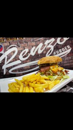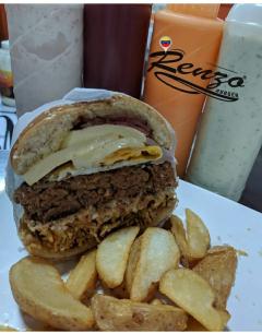 2 Carnes de hamburguesa, 2 queso mozzarella, 2 queso amarillo, 2 tocinetas, tomate y lechuga + Papas + Bebida 250 ml