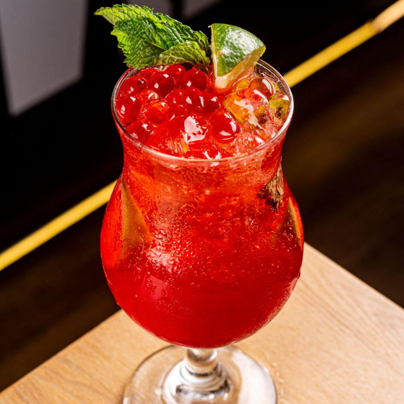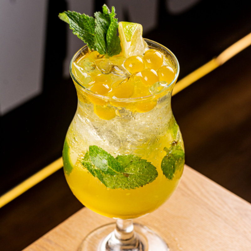 Ron de cuba, Yerbabuena, limón, azúcar y soda También con fresa o maracuyá.