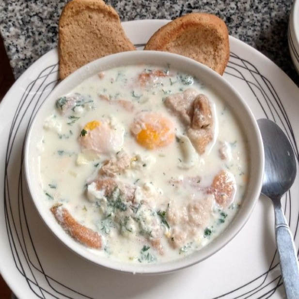 Caldo con Huevo y Arepa
