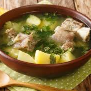 Caldo especial con costilla de Res, papa, cilantro y arepita, servido en taza de 24 onz