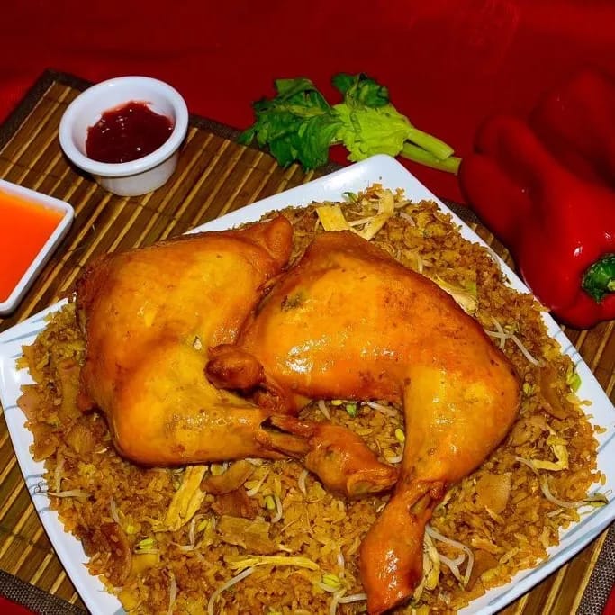 Arroz, jamón, cerdo, pollo, raíces chinas + 1 pollo Broaster en pierna pernil+ papa criolla 2 gaseosa1.5 LT.