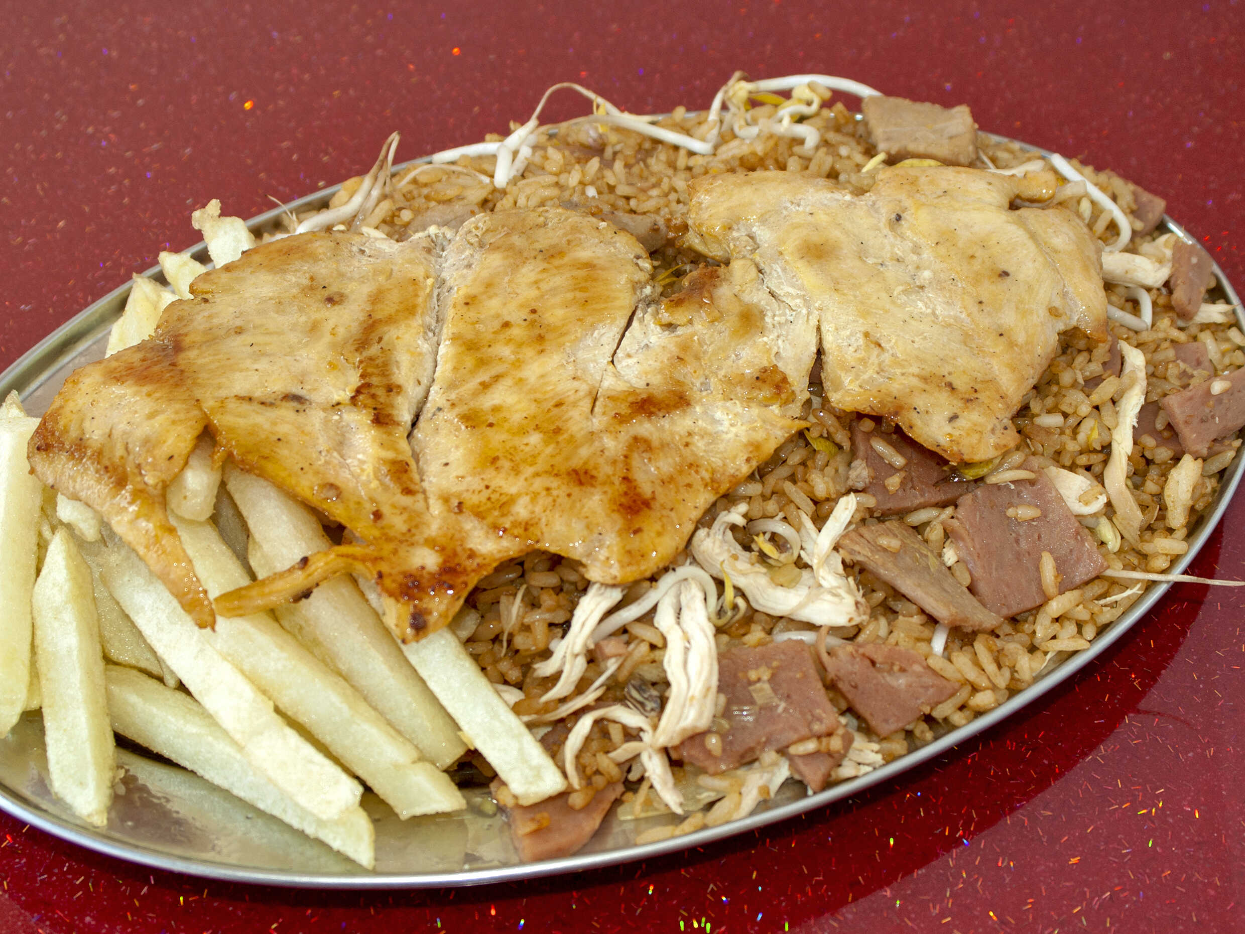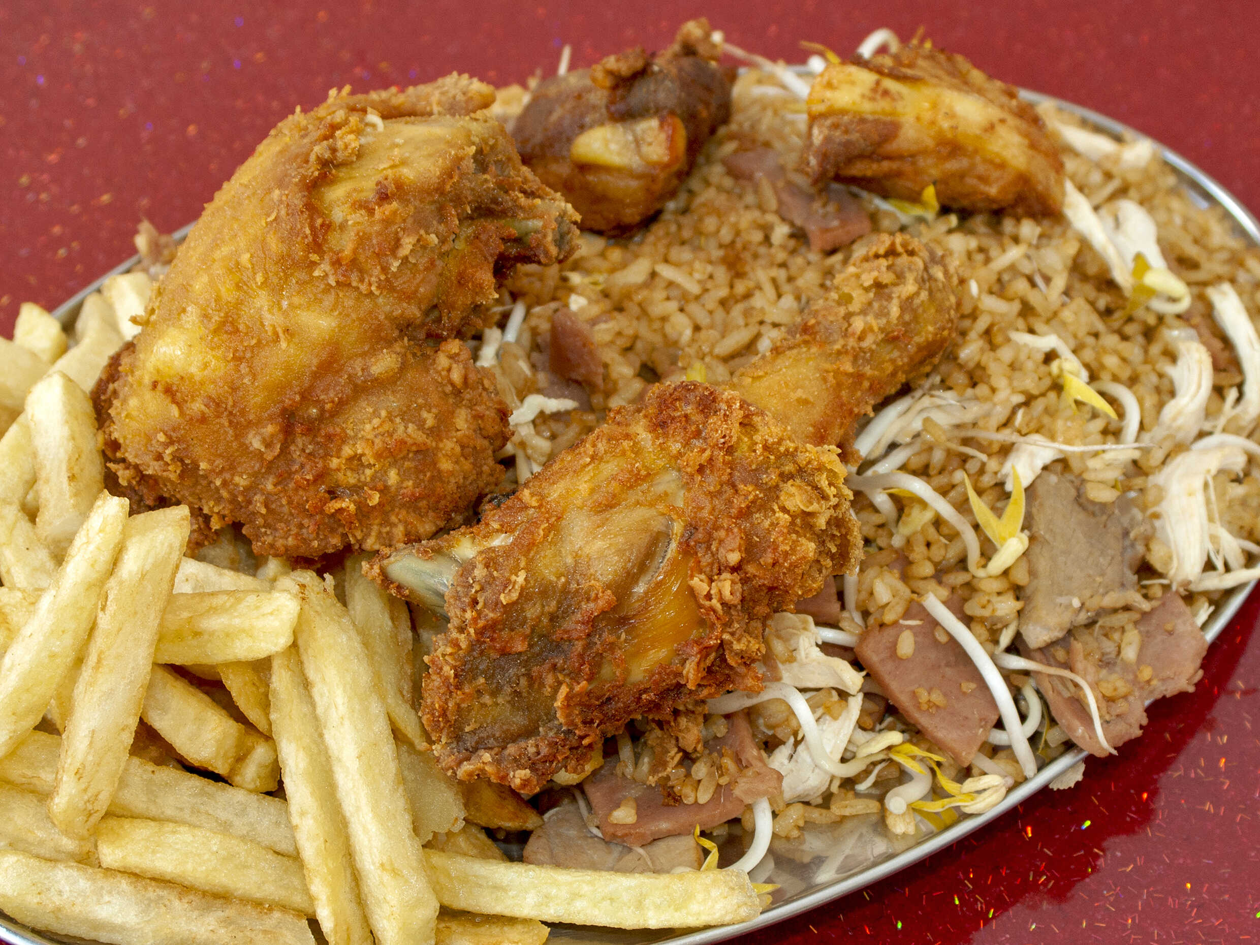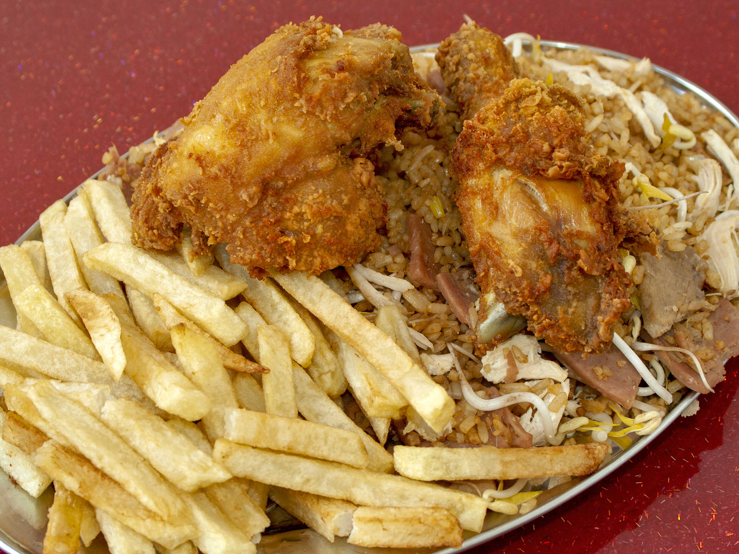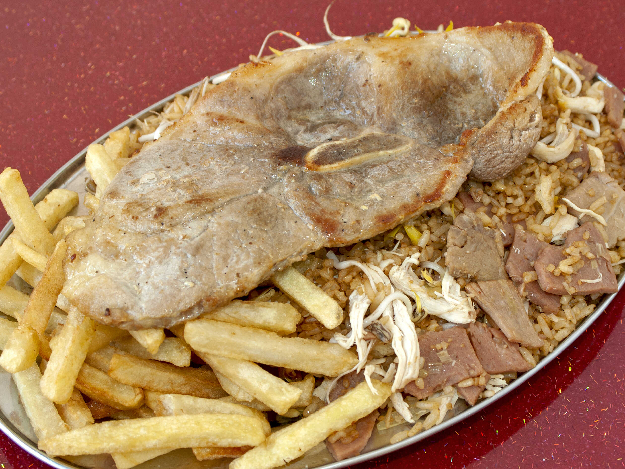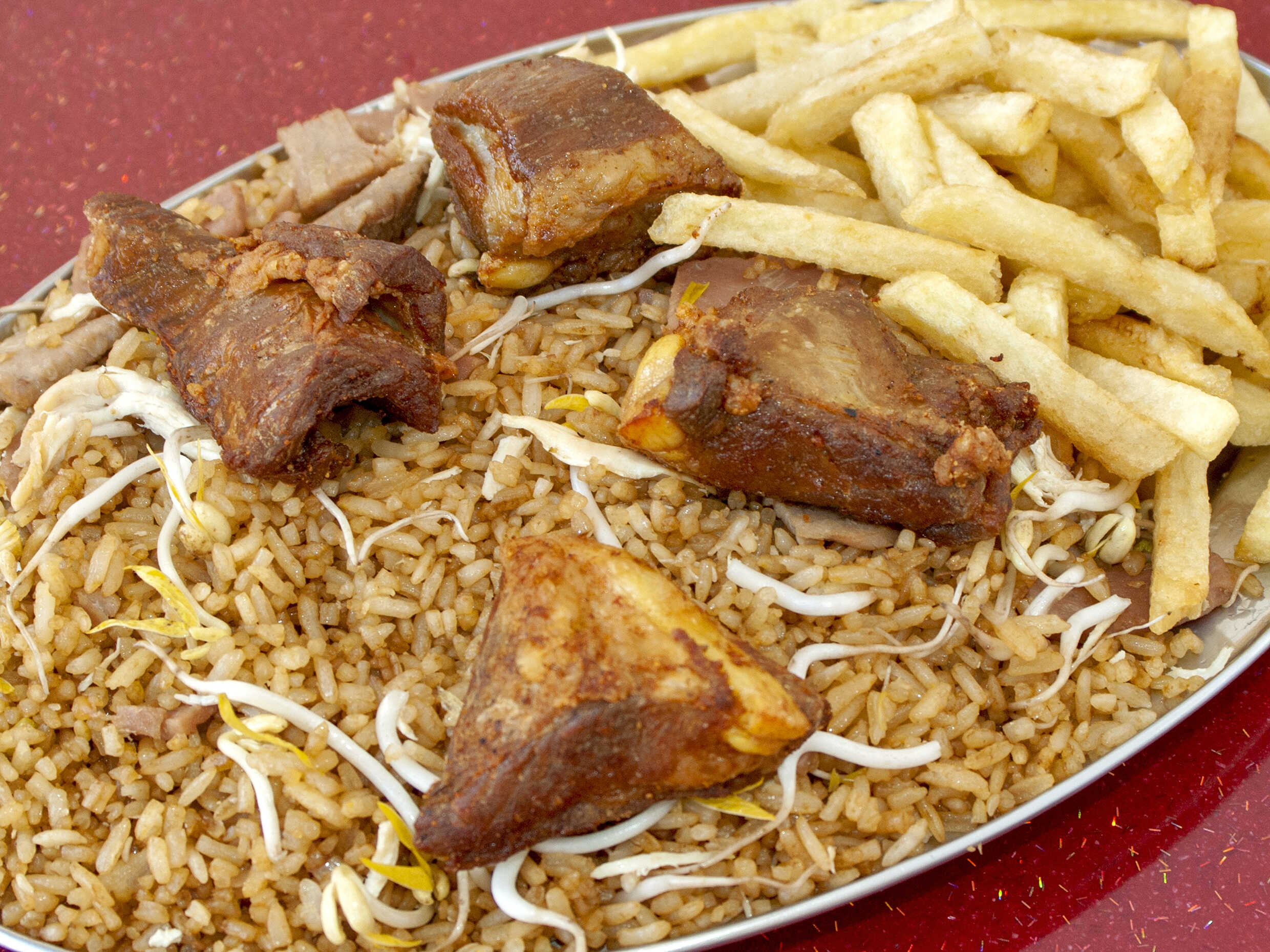 Arroz chino, pollo, costillas, francesa