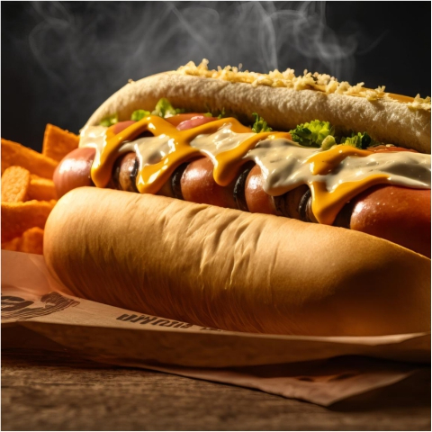 Salchicha, papas chips, queso y salsas
