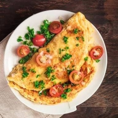 3 huevos en tortilla, champiñones laminados, maíz tierno y una lonja de queso acompañado de café chocolate o te Verde y pan