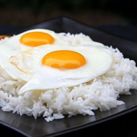 huevos fritos, con arroz, arepa, y bebida ( chocolate o café).