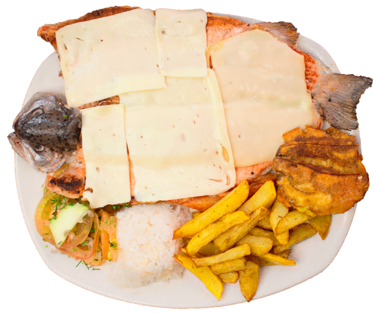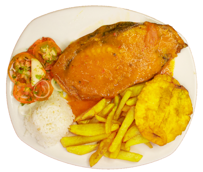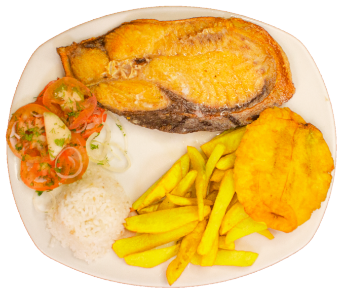 Acompañados con papa a la francesa, patacón, arroz y ensalada.
