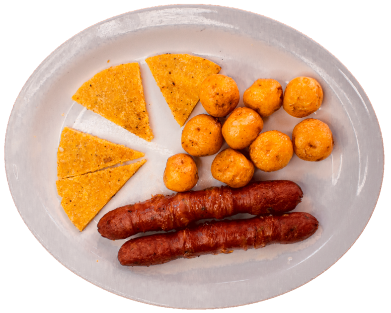 Chorizo con Papa Criollas y Arepa Santandereana