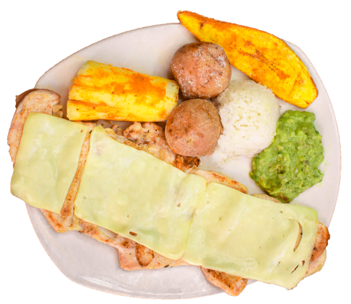 Pechuga a la Plancha (300 gr aprox), papa salada, yuca, arroz guacamole y sopa del dia