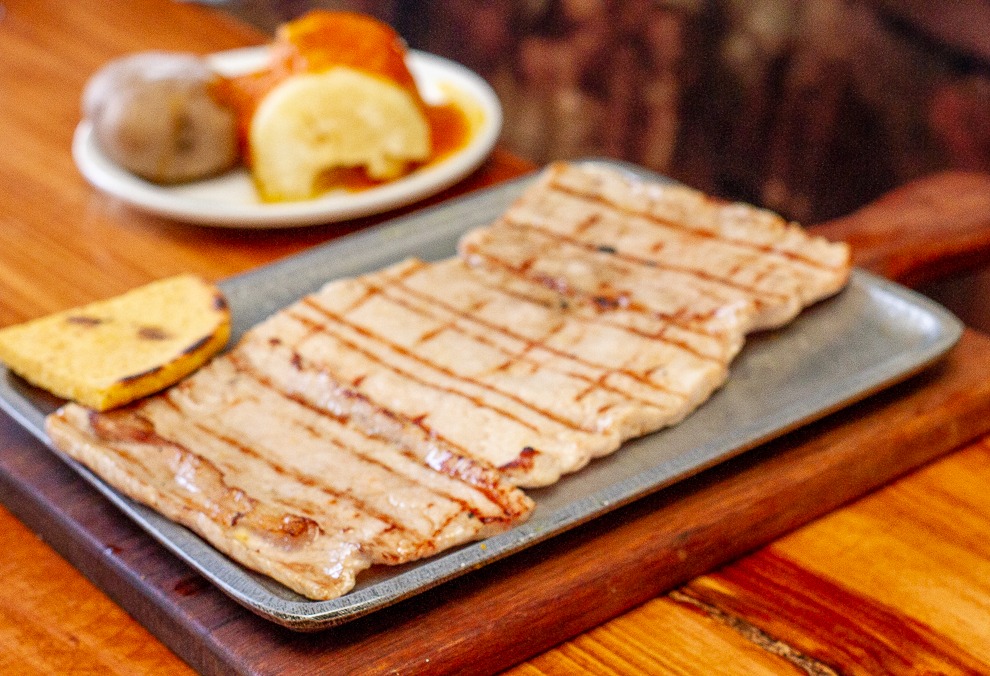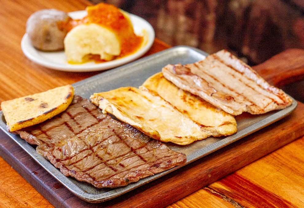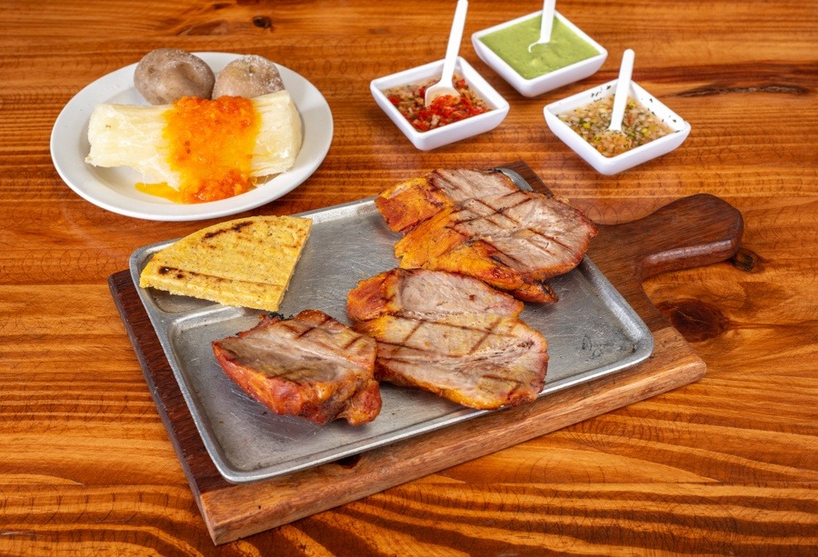 Porción de costilla de cerdo, carne a la llanera y punta de lomo, acompañada de papa salada, yuca (350gr).