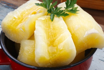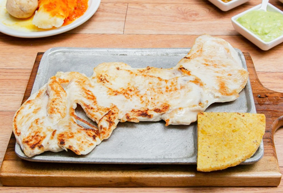 Pechuga a la plancha acompañada de papa salada y yuca.
