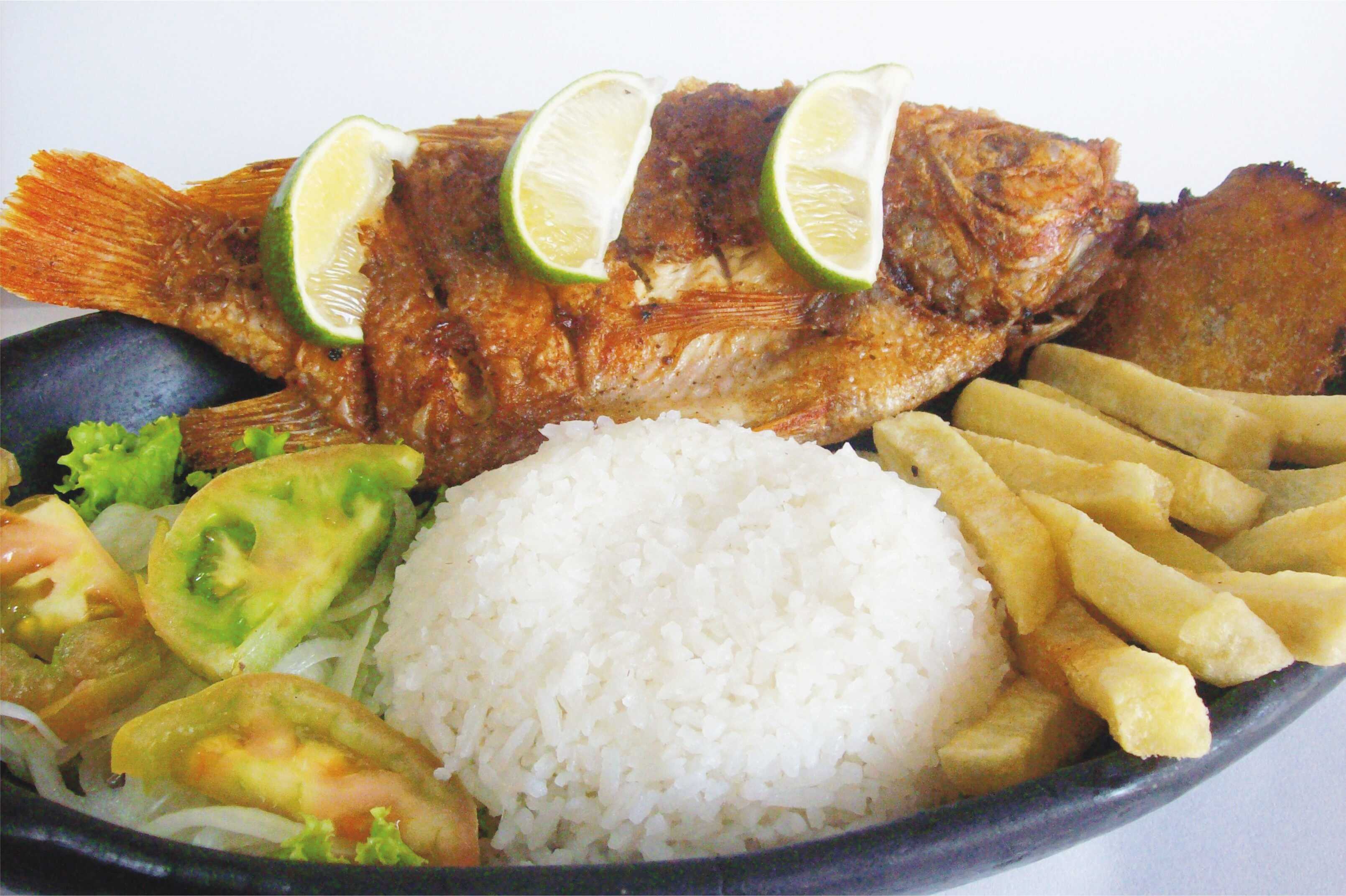 Acompañada de arroz, papas fritas, patacón y ensalada