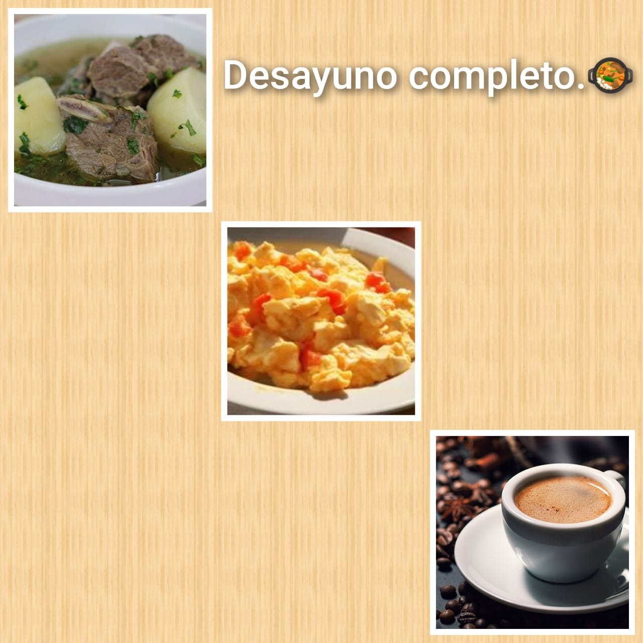 CALDO DE COSTILLA+HUEVOS PERICOS+CHOCOLATE.