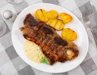 Deliciosa carne en bisteck con arroz papa a la francesa y ensalada patacon o yuca y du sopa del dia