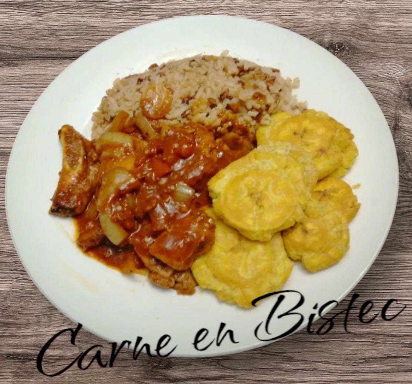 Porción personal: Elige tú principio, frijol, espagueti, elige tu proteína, milanesa de pescado apanado, milanesa de pollo apanado, pollo pierna pernil dorado, pollo pierna pernil en salsa criolla, res a la plancha. Sopa del día 16onz y ensalada de la casa y limonada natural12onz