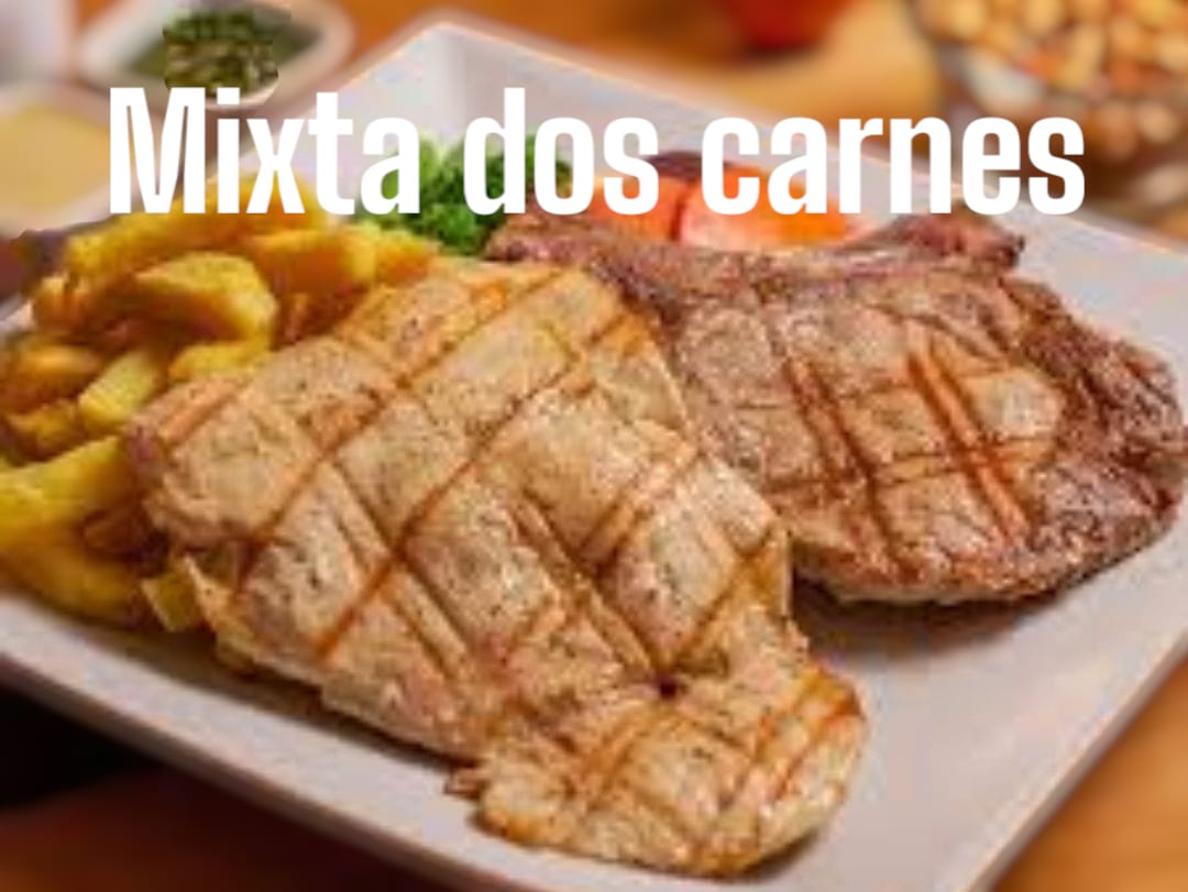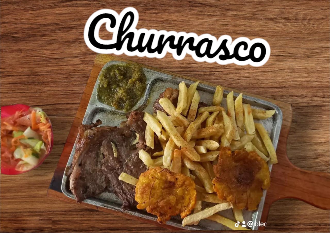 Sopa del día, papa francesa, arroz, patacón o croquetas de yuca, ensalada, churrasco cubierto con mazorca tierna, salchicha y queso y limonada natural 12 oz.