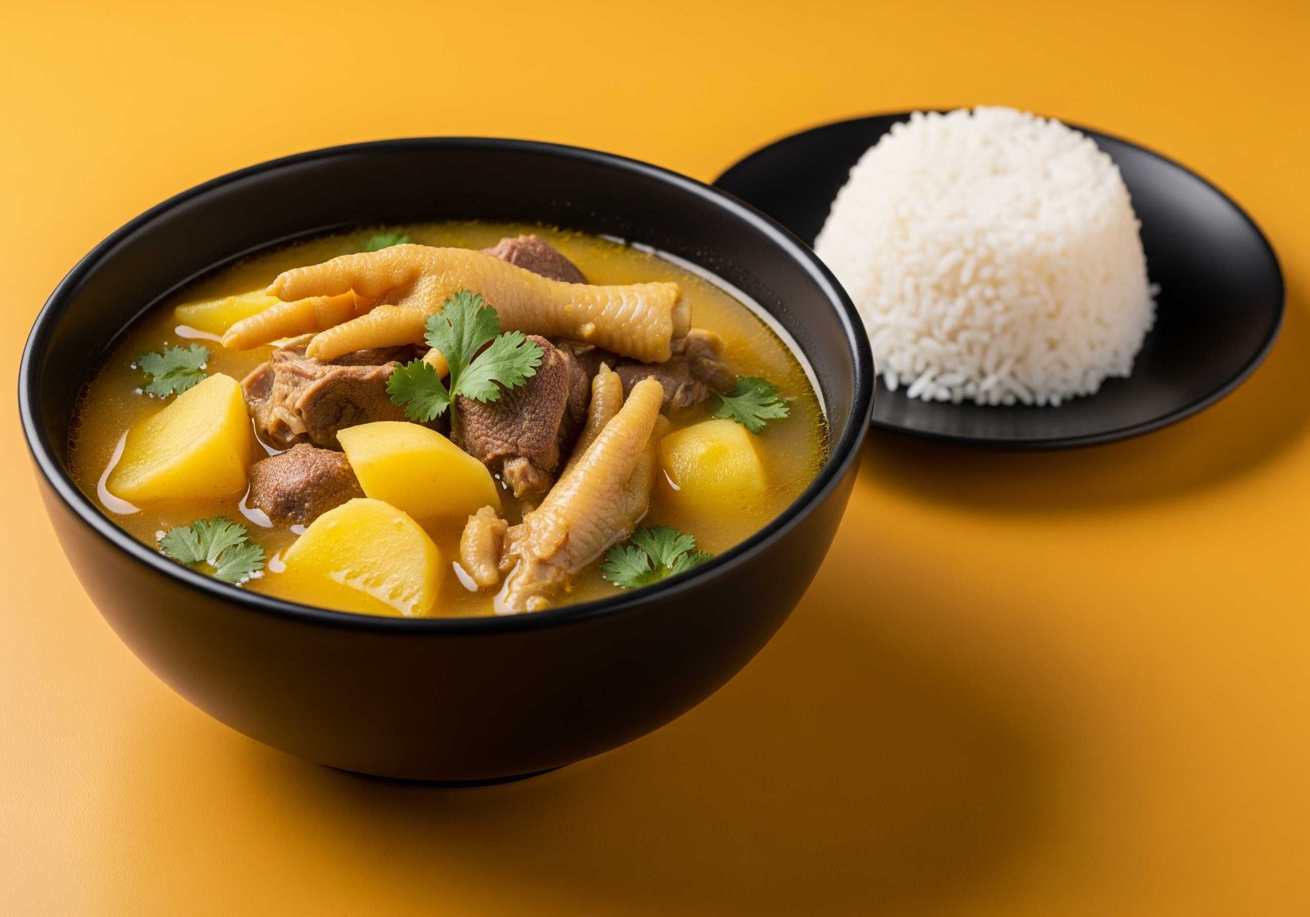 Sopa de mondongo, acompañado de arroz.