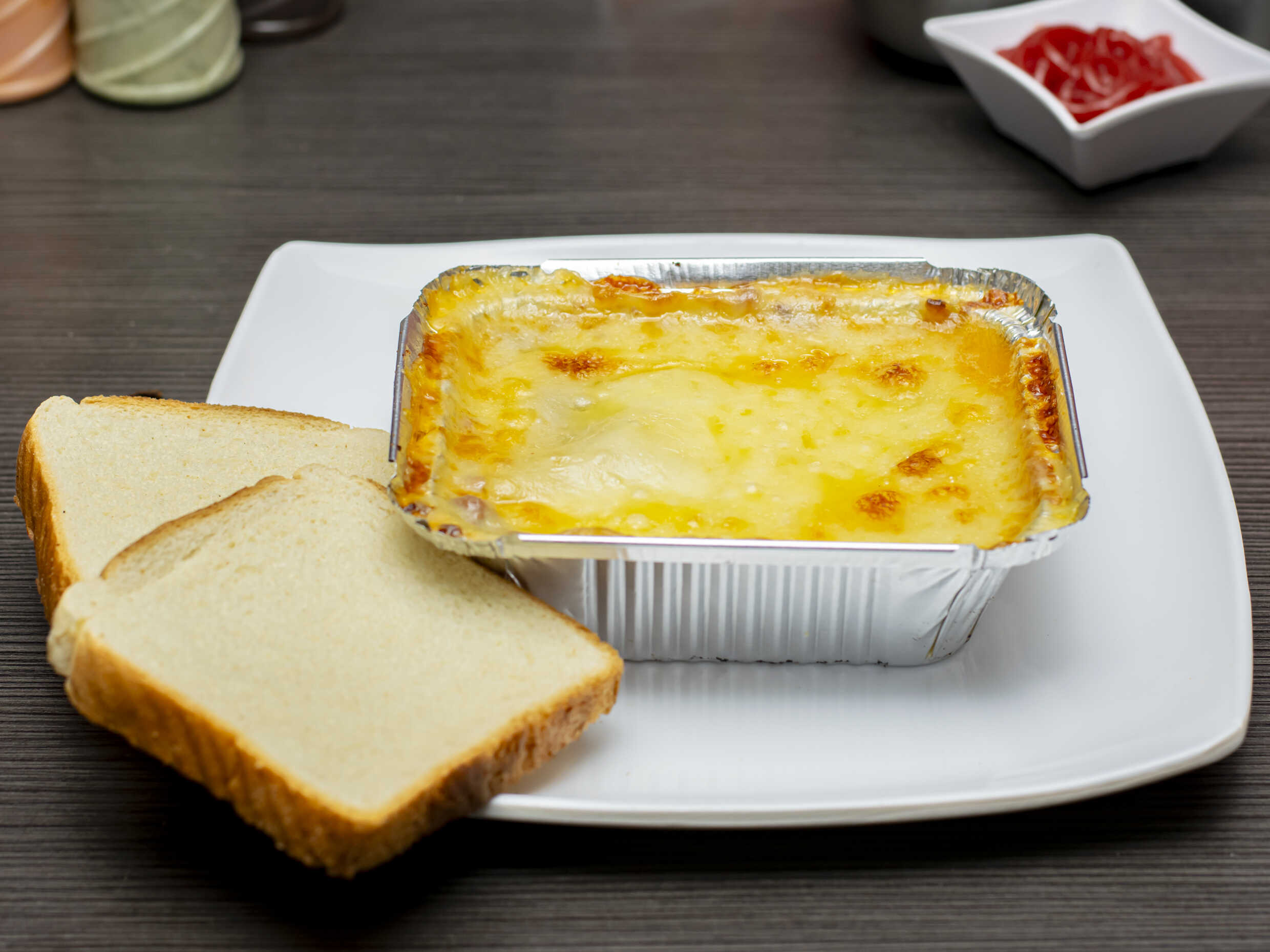 Lasagna Mixta*1 + Pan Tajado*1 - Lasagna 500 gr con carne, pollo, champiñón, pasta, queso doble crema, y salsas de la casa.