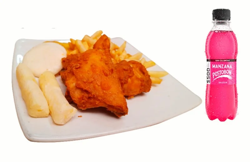 Pechuga de pollo al broaster acompañada de papa y bebida de 250 ml.
