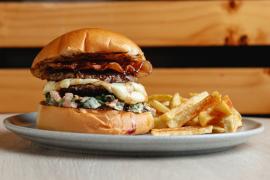 Disfruta de dos deliciosas hamburguesas clasicas acompañadas de papa a la francesa